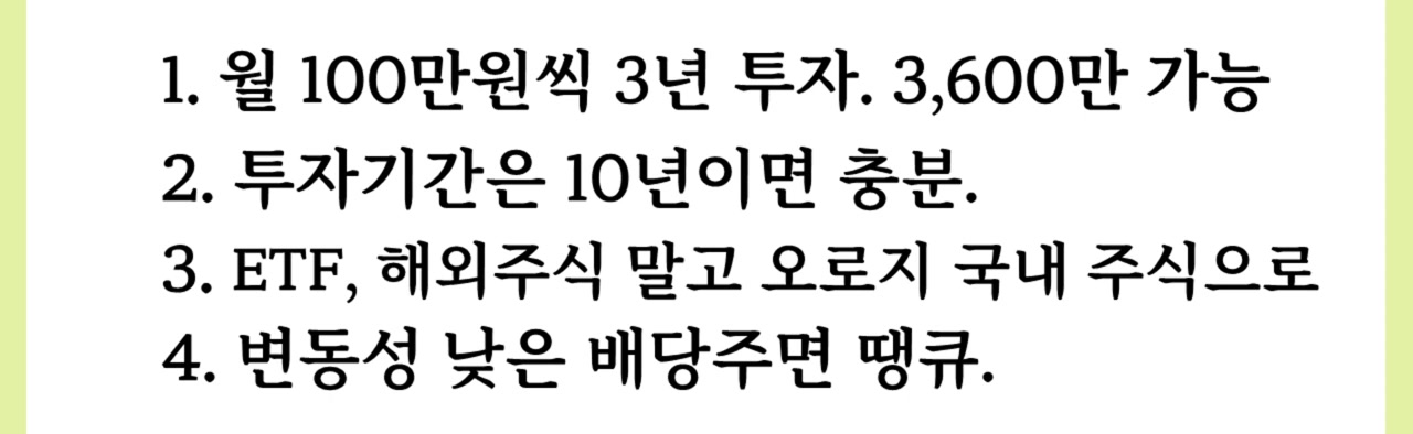 월 100만원 배당금 수령을 위한 투자 금액이 3,600만원 이상이 필요한 점을 고려하면,