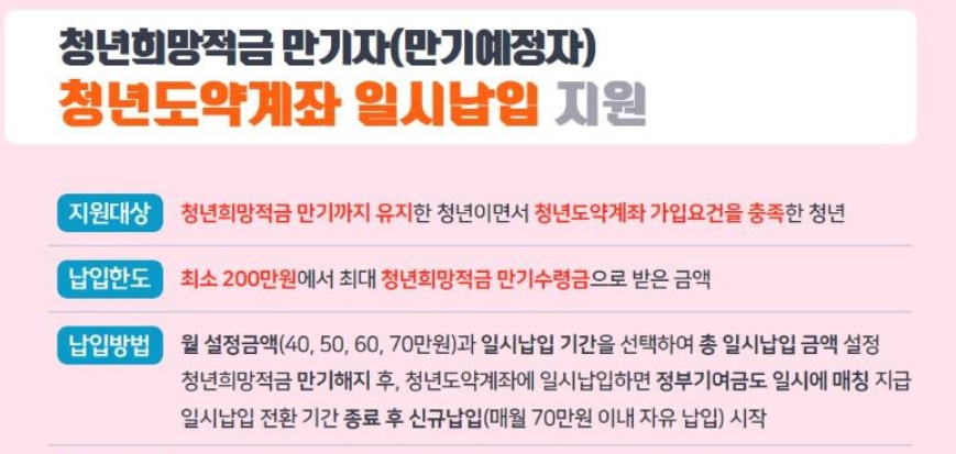 청년 희망 적금, 만기 수령금 청년 도약 계좌로 일시납 가능